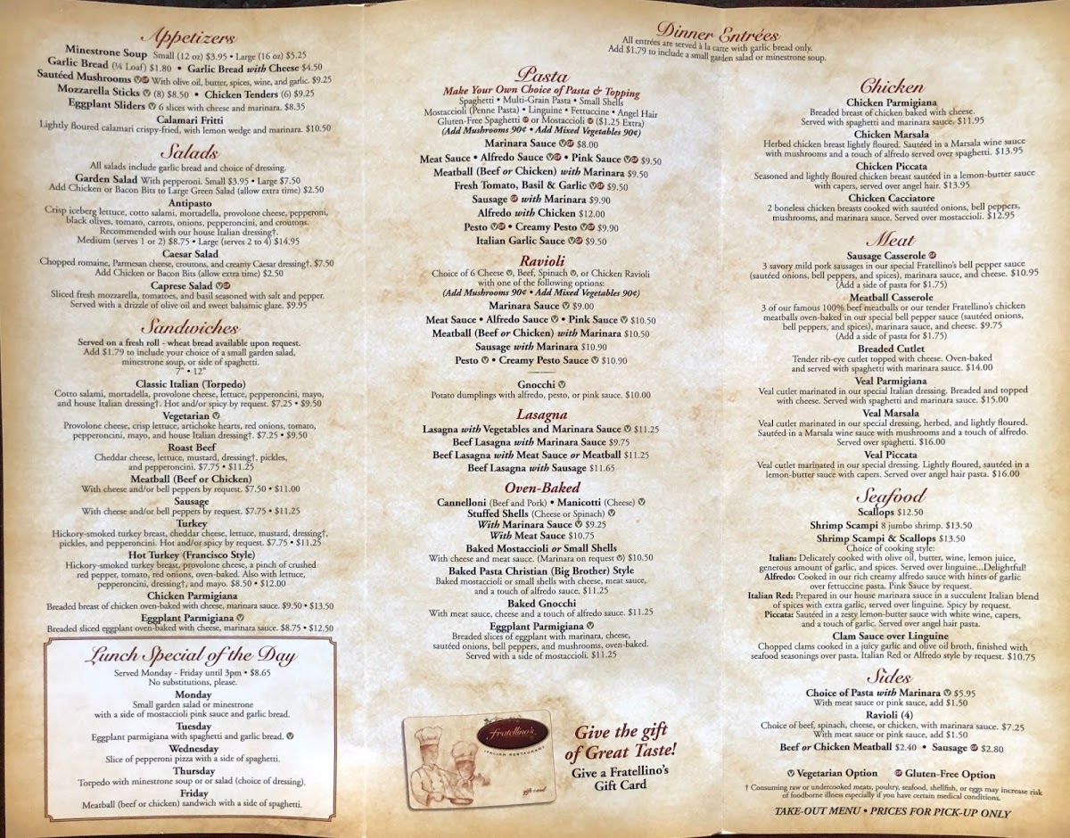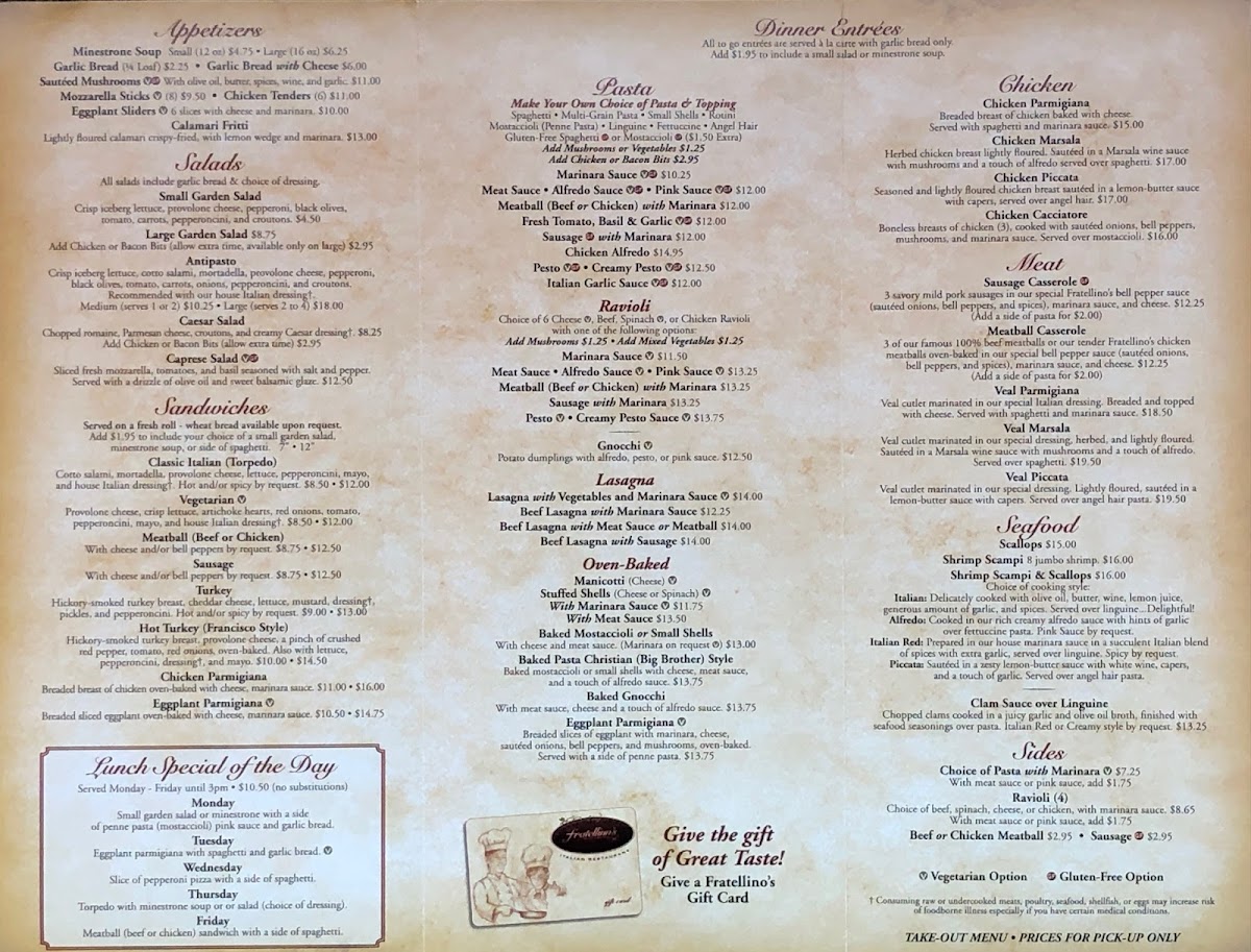 Looking for a cozy spot to enjoy authentic Italian flavors? The Fratellino's Italian Restaurant Menu offers a delightful journey through Italy's finest dishes, all crafted with fresh ingredients and traditional recipes. Whether you're in the mood for a creamy pasta, a perfectly seasoned pizza, or a flavorful risotto, there's something on the menu to satisfy every craving.