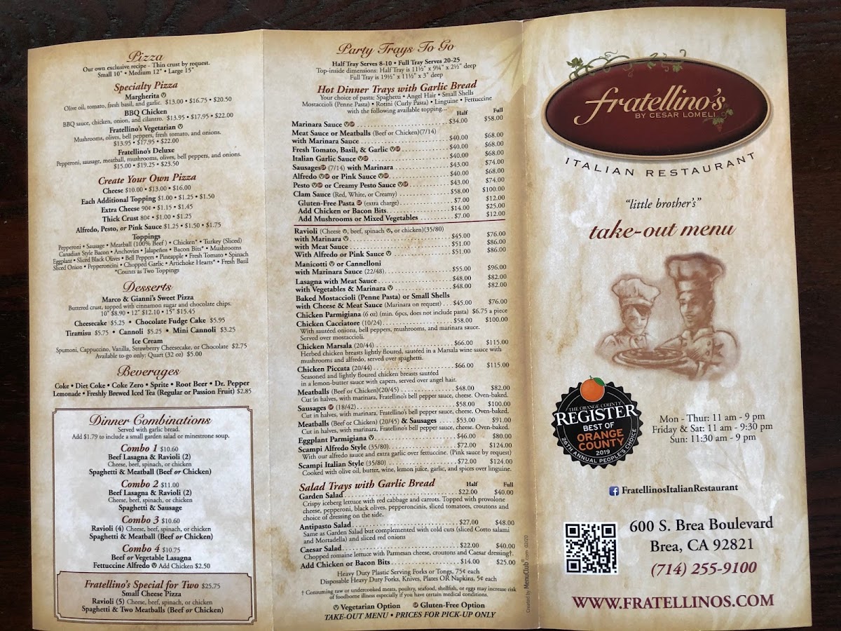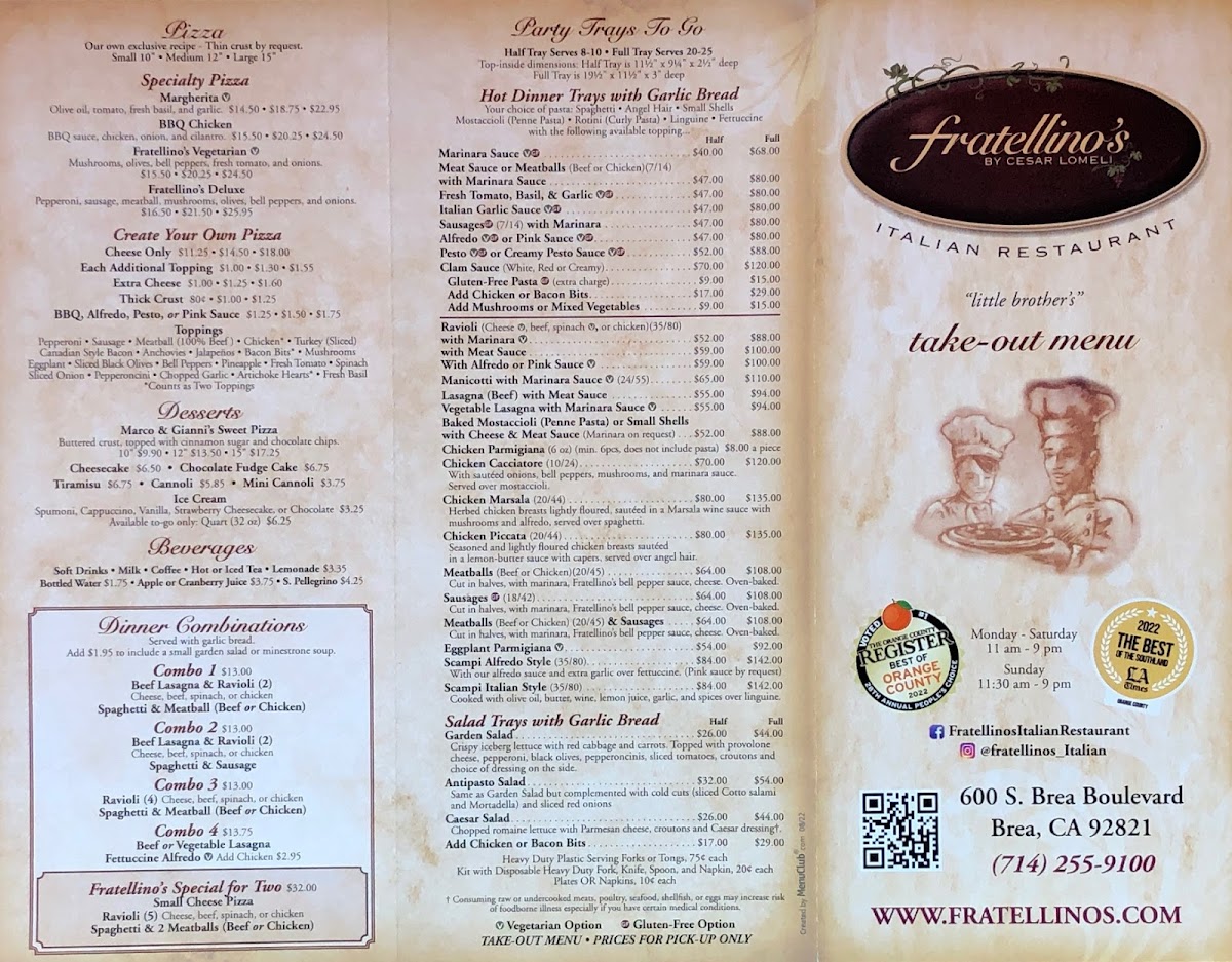 Located at 600 S Brea Blvd, Brea, CA, Fratellino's is the perfect place for a casual meal with friends or a special night out. Whether you're a longtime fan or visiting for the first time, the menu is packed with flavorful dishes that bring Italy right to your table.