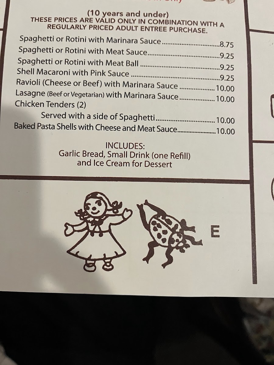 Breaded breast of chicken baked with cheese, served with spaghetti and marinara sauce. All entrees are served a la carte with garlic bread.
